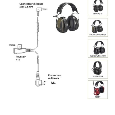 Cordon pour casque 3M Peltor (ProTac III, ...) et Sordin MSA (Supreme Pro X)